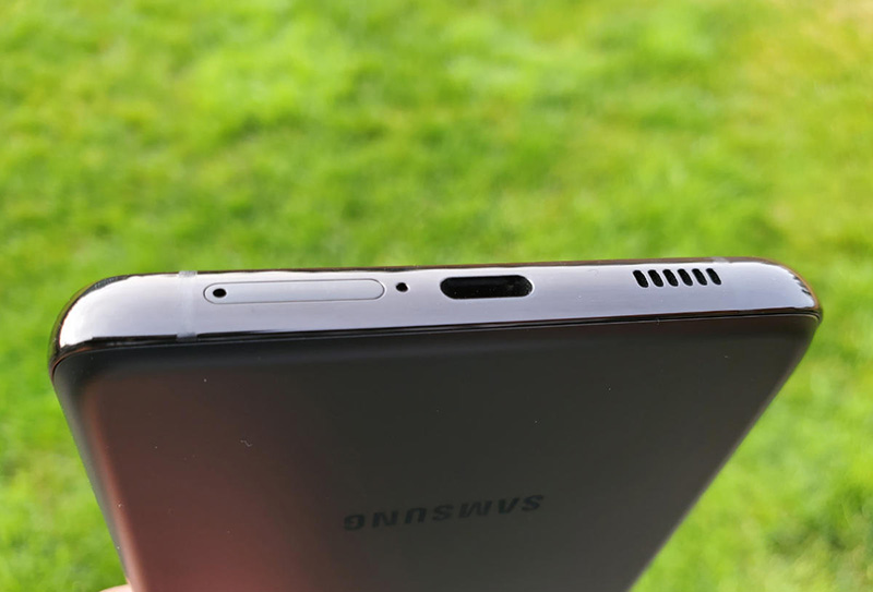 Нижний торец занят лотком для симок, микрофоном, разъёмом USB Type-C и перфорацией под динамик. Справа распложена регулировка громкости и кнопка включения. На верхнем торце только микрофон. Разъёма для наушников нет, что уже является стандартом для большинства смартфонов, не только передовых – таковы тренды. Возможность расширения хранилища с помощью карт памяти не поддерживается. Устройство защищено от пыли и влаги по стандарту IP68. За качественный стереозвук отвечают динамики AKG.